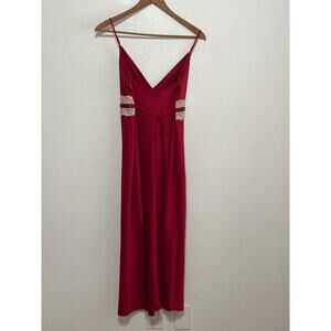 VTG 90s Satin Slip Dress California Dynasty L Burgundy Babydoll Lace Bow
