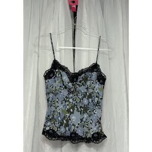 VTG 90s Silk Floral Lace Cami Tank Top Y2K Coquette Cottagecore Romantic Grunge size 0