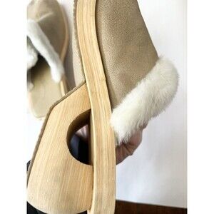 VTG 90’s Skechers Suede Clogs Tan Y2K Chunky Heel Platform Size 9 Wood Heel