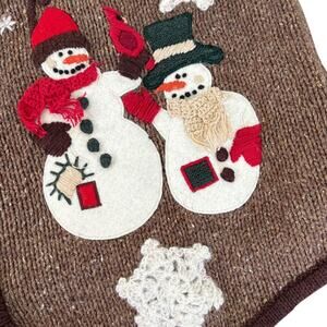 VTG 90’s Snowman Christmas Vest M Patch Embroidery Old Money Ugly Holiday Sweater Brown