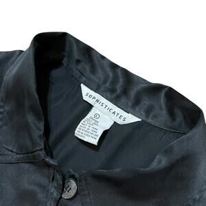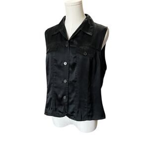 VTG 90s Sophisticates Washed Black Silk Button Up Sleeveless Collared Vest Top L