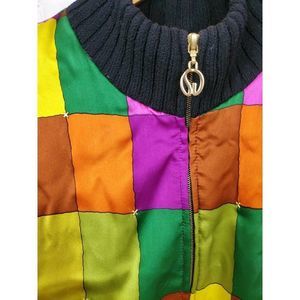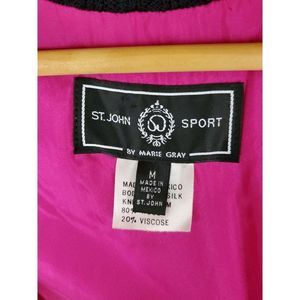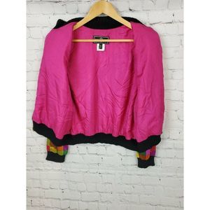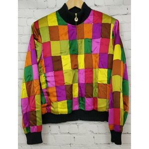 VTG 90s St John Silk Bomber Jacket Size M Block Multicolor Satin Wool Trim