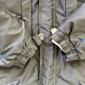 Features: Dual zipper, interior & exterior pockets, elastic cuffs, adjustable drawcord hem