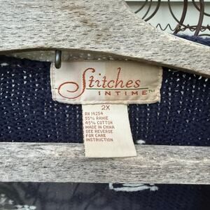 VTG 90s Stitches America 4th of July Red White Blue Sampler Cardigan Sweater 2X