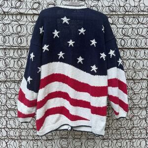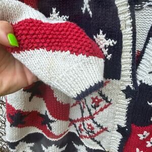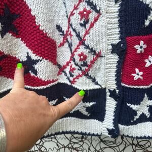 VTG 90s Stitches America 4th of July Red White Blue Sampler Cardigan Sweater Granny