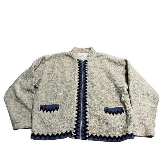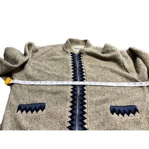 VTG 90s Streetwear Womens Medium Deep Pile Fleece Navajo Aztec Trim Sweater Coat.