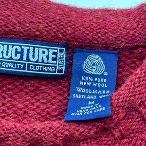 VTG 90s Structure Sweater Mens M Pullover Ski 100% Wool Geometic Design Baggy