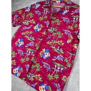 VTG 90's Sun Streak Aloha Hawaiian Shirt Floral Palm Tree Vacation Button Up - L