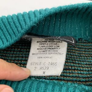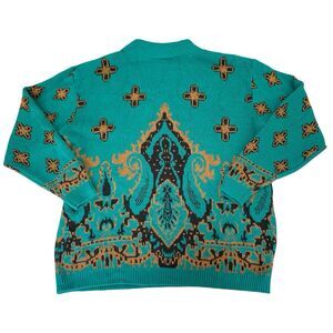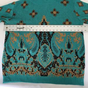 VTG 90s Sweater Women M Teal Black Mock Neck Classy Glam Glamma Grandma Mom Boho