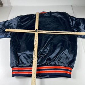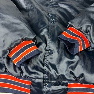 You are purchasing Vintage 90s Swingster Chicago Bears Satin Jacket Adult Medium Blue & Orange Snap Button NFL Football