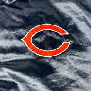 Style- Jacket 90s Chicago Bears Satin Jacket Medium Blue & Orange Snap Button NFL Football