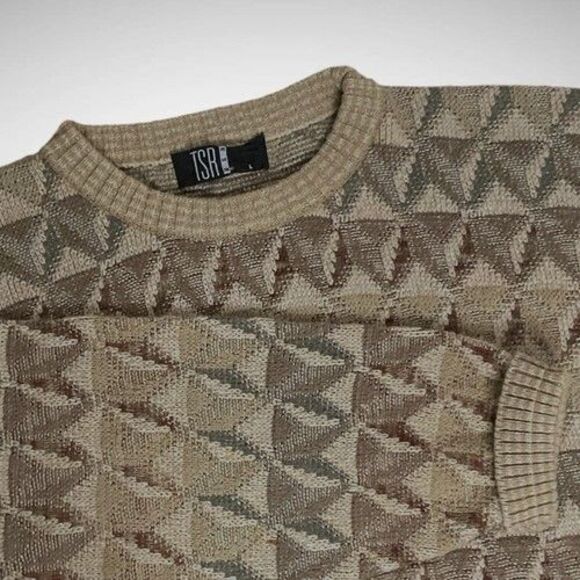 VTG 90s TSA Abstract Geometric CrewNeck Sweater Men Size Large(Runs 2XL) Gray