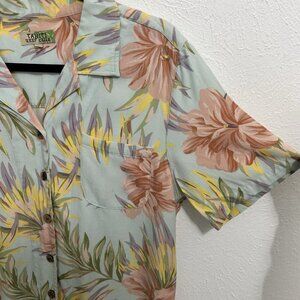 VTG 90s Tahiti Reef Club Hawaiian Colorful Floral Button Up Resort Cruisewear L