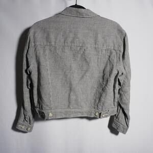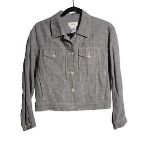 VTG 90s Talbots Black White Houndstooth Linen cotton Blend Trucker Jacket Womens Retro vintage Y2K 2000s breathable jean jacket denim style jacket academia casual collared pockets button up