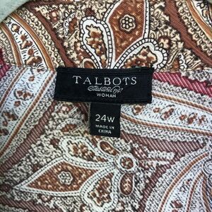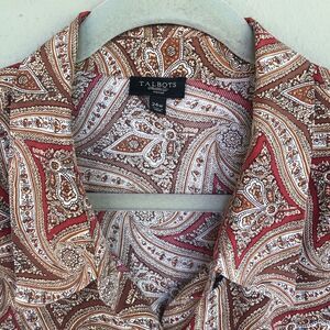 VTG Talbots Silk Blouse Womens 24W Chocolate Brown Red Paisley Button Up Boho Quiet Luxury