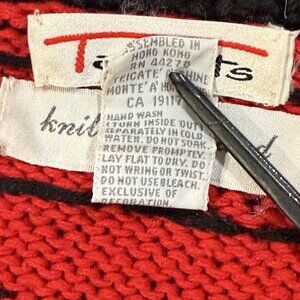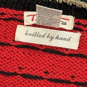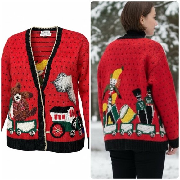 VTG 90s Talbots Womens Large Christmas Toy Train Hand Knit Red Cardigan Sweater