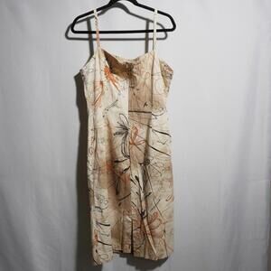 VTG 90s Tan Abstract Mini Dress Strappy Artsy Retro Georgia Netti Cotton Sz 10 vintage sleeveless spaghetti strap back slit party cocktail retro cream brown art single stitch zip up single stitch breathable classy date night