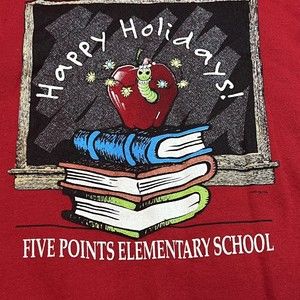 VTG 90s Teacher Five Points Elementary School Happy Holidays Sweatshirt on Lee Tag