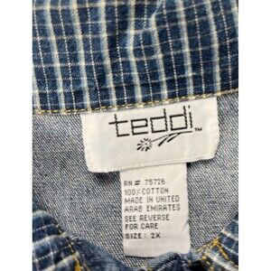 VTG 90s Teddi Light Blue Denim Chore Jacket Emboidered Applique Patchwork Sz 2X