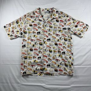 VTG 90s Third Rail Sushi Print Button Up Shirt Men XL Fish Inari Japan Food USA