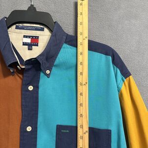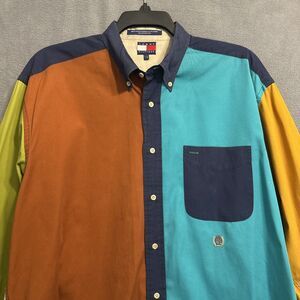 Vintage 90s Tommy Hilfiger Multicolor Color Block Button Down Shirt Mens Large Pocket Crest Long Sleeve