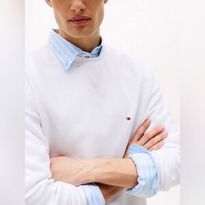Elevate your casual wardrobe with this classic white sweatshirt from Tommy Hilfiger. Perfect for layering or wearing on its own, this top offers both comfort and style.