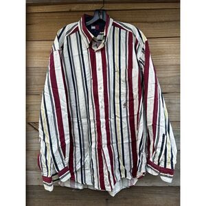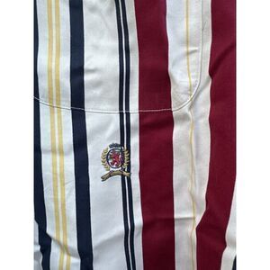 VTG 90s Tommy Hilfiger Multicolor Striped Lion Crest Hip Hop Button Down XL. Condition is Pre-owned. Shipped with USPS Ground Advantage.