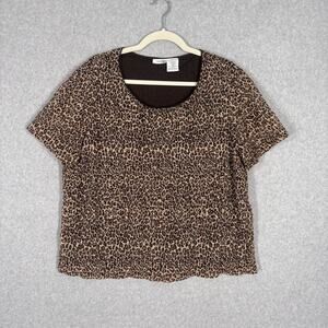 East 5th VTG 90s Top 2XL Leopard Animal Crinkle Sheer Textured Loud Maximalist Stretch Top Shirt Short Sleeve