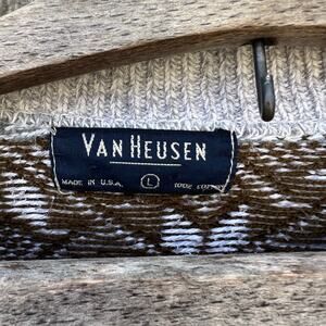 VTG 90s Van Heusen Fair Isle Snowflake All Over Knit Mock Neck Sweater LG Cotton