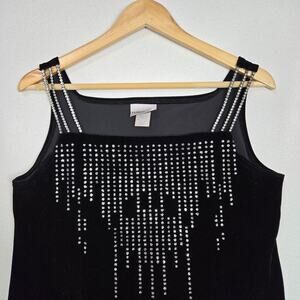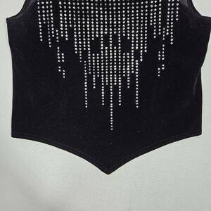 Vintage Fashion Bug Velvet Crop Tank Top sz 12 Black Rhinestone Straps Accents