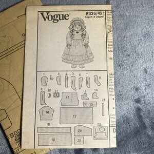 Add a touch of nostalgia to your collection with this vintage Vogue sewing pattern from the 90s. This pattern, number 8336, features early American clothing for a 6-inch girl doll. The pattern is uncut and ready for use. It does have iron on transfer in good condition
