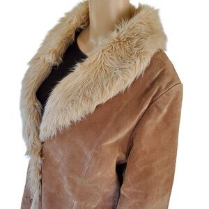 VTG 90s WILSON'S LEATHER COAT Women's XL Maxima Y2K Penny Lane Faux Fur Lined