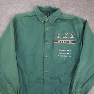 VTG 90s Warner Bros Wilee Coyote Medium Green Long Sleeve Collared Shirt