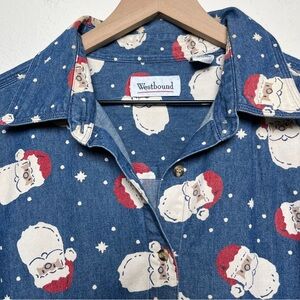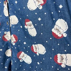 VTG 90s Westbound Women Button Front Shirt Large Cotton Chambray Denim Santa Christmas Holiday Teacher