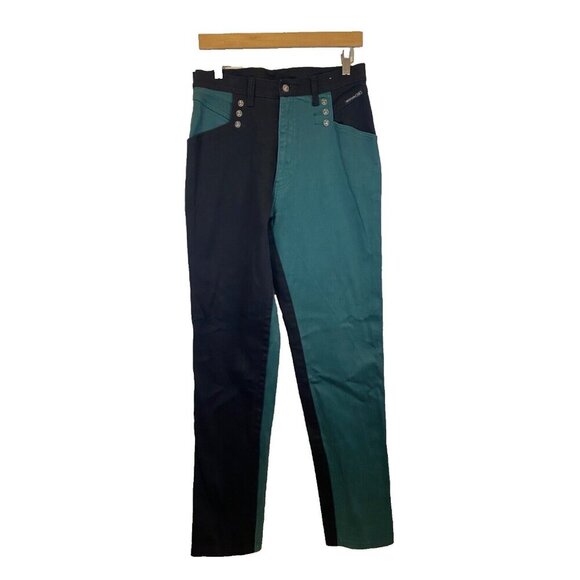 VTG 90s Western Ethics Size 11 Green Black Colorblock Two Tone High Waisted Jean