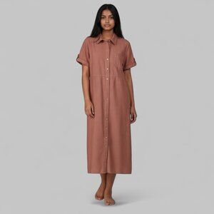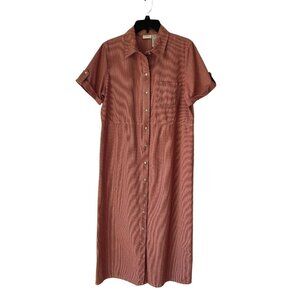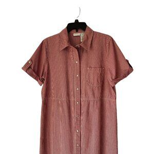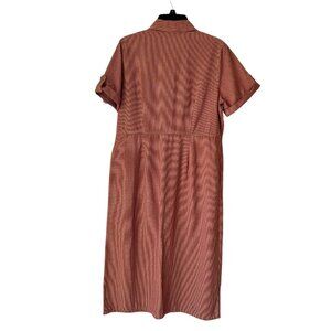 VTG 90s White Stag Midi Shirt Dress L Red Tan Gingham Check Snap Front