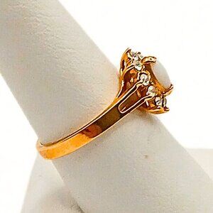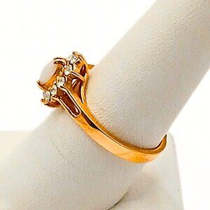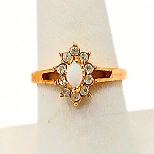 VTG 90s Womens 14K Gold Opal Simulated Diamond Ring Size 8 Marquise Cluster Halo
