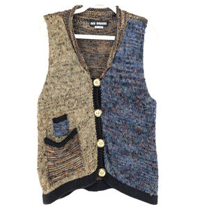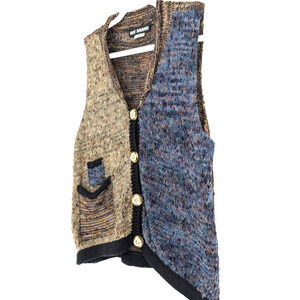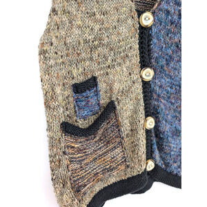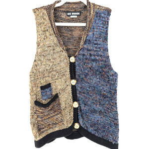 VTG 90s Womens Color Block Maximalist Boho Chunky Knit Artsy Sweater Vest Small