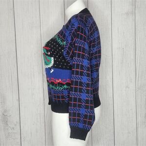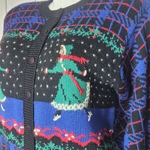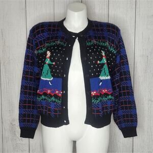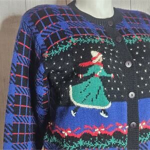 VTG 90s Wool Blend Knit Plaid Holiday Winter Ice Skating Cardigan, size Large