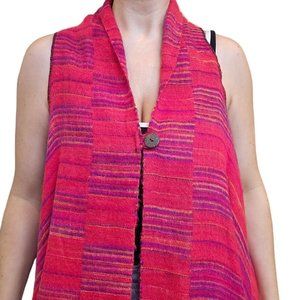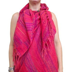 VTG 90s Wool Blend Red Pink Boho Wrap Duster Fringe Multi-wear Festival Hippie