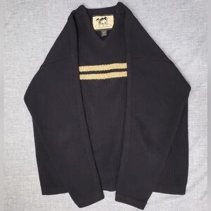 VTG 90s Wool V-Neck Sweater Fargo Clothing Black (w/2 Tan Stripes) Size XL