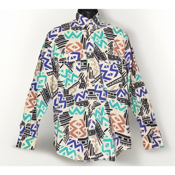 VTG 90s Wrangler Frontier Series Shirt Medium Collar Aztec Abstract Cowboy Rodeo