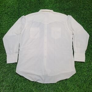 Vintage 90s wrangler cowboy cut pearl snap western shirt made in usa white xl 17x35 long tails rodeo ready