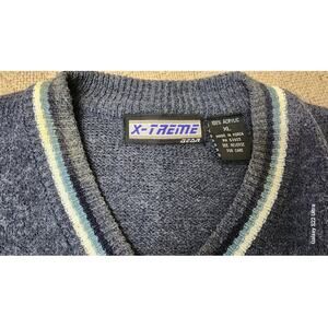 VTG 90s Xtreme Gear Gray V Neck Seeveless Artificial Wool Sweater Vest Mens XL
