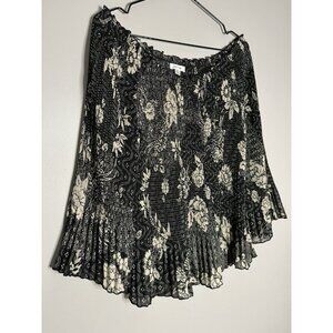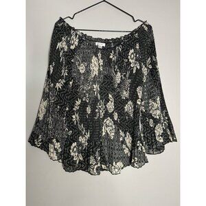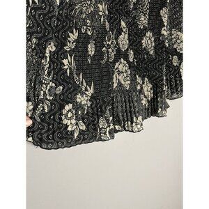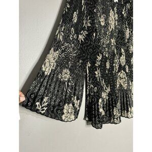 VTG 90s Y2K Black Floral Steam Pleated Stretchy Blouse Size L Bell Sleeves Boho