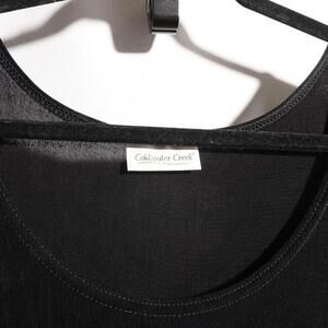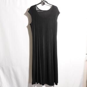 VTG 90s Y2K Black Slinky Midi Maxi Dress Coldwater Creek Solid Sz L Whimsigoth vintage retro classic travel minimalist cap sleeve short sleeve scoop neck round neck witchy goth charmed phoebe friends
