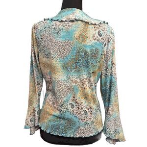 VTG 90s Y2K Blouse Large Womens Top RUNS SMALL Fairy Grunge Ruffle Neck Coquette