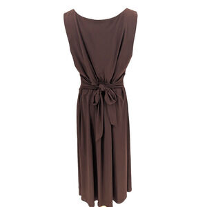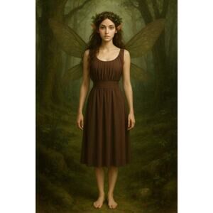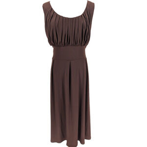 VTG 90s Y2K Brown Milkmaid Prairie Pleated Tie Back Midi Dress Fairy Grunge 14