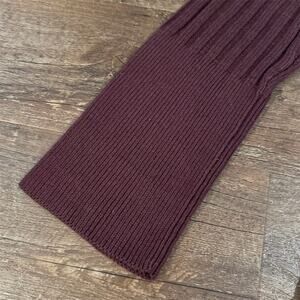 This cardigan has a single button front closure and lots of texture to the knit. The color is a great purple-y brown that's almost a little whimsygoth. It's in good condition, though I think it has maybe been folded for quite a while and has some marking/creasing especially on the sleeves. Please see photos for details.