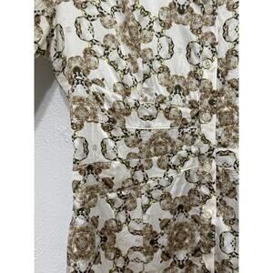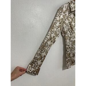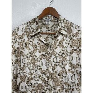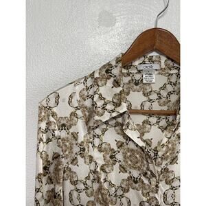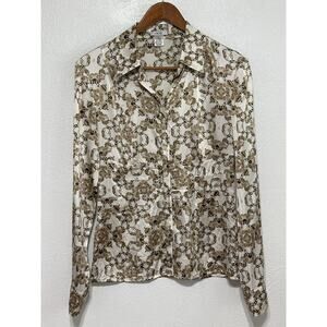 VTG 90s Y2K Cache Silk Button Blouse M Cream Brown Corpcore Girl Boss City Chic